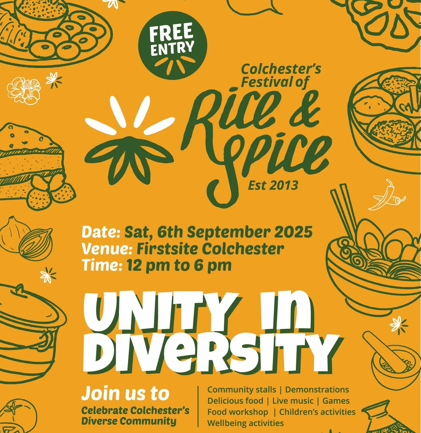 The Colchester’s Festival of Rice & Spice is powered by our community. We’re proud to have the ongoing support of our local community groups representing diverse ethnicities and nationalities. From volunteers to performers, cooks to craftmakers, this festival exists because people believe in the strength and beauty of collective power our diverse culture. Your continued support and love helps us keep that spirit alive.